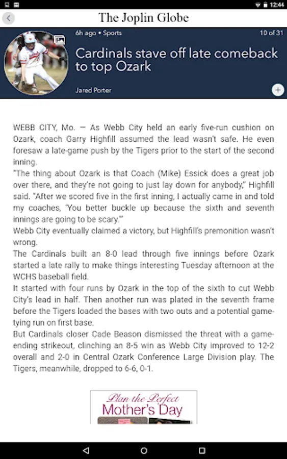 Take the Joplin Globe with you wherever and whenever you go. Your community resource for news, commentary, photos, video and special features is evolving. Access it now and take off with our award-winning breaking news, sports, weather and more. The app is free to download, but subscribers can receive the Joplin Globe daily edition or access premium mobile content for one low monthly rate. Not a subscriber yet? Access limited content each month for free, and upgrade at your convenience.