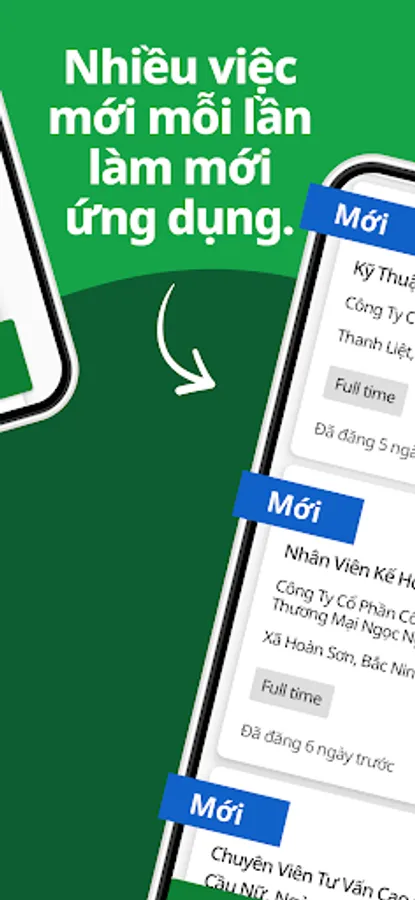 - Việc làm mới được cập nhật ngay mỗi lần tải lại trình duyệt