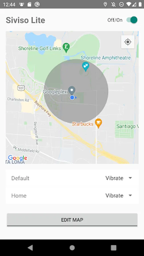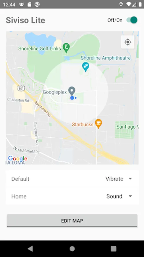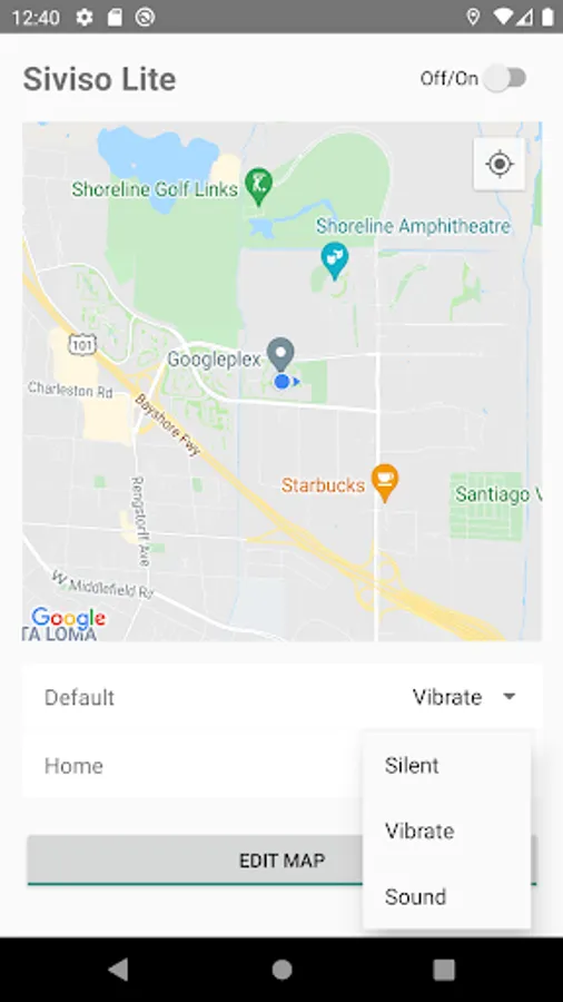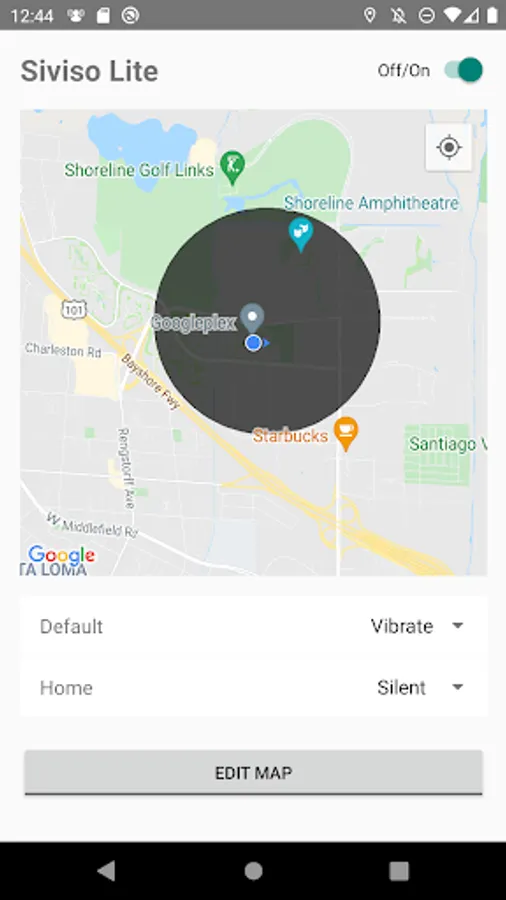 The app will change the ringmode based on when you are home (inside the circle) or default (outside the circle). The ringmodes are silent, vibrate, and sound which is regular ringing.