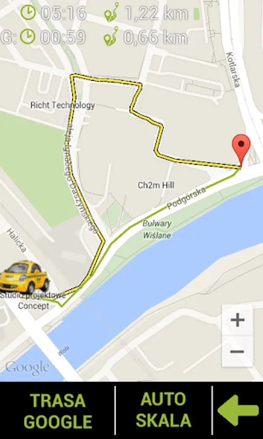 Route, you can keep track on the map. After completion of the course can be compared with the route proposed by Google.
