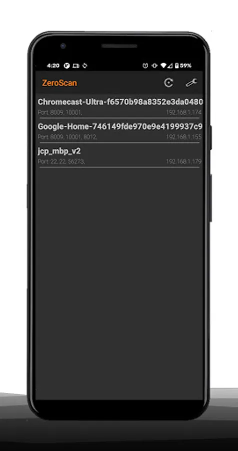 ZeroScan is a network service discovery tool for iOS, Android, and macOS. It uses built-in API's to scan your network for devices broadcasting zeroconf (mDNS, DNS-SD, Bonjour) services. This allows you to easily discover the IP addresses of devices on your network, and what ports they are accepting connections on.