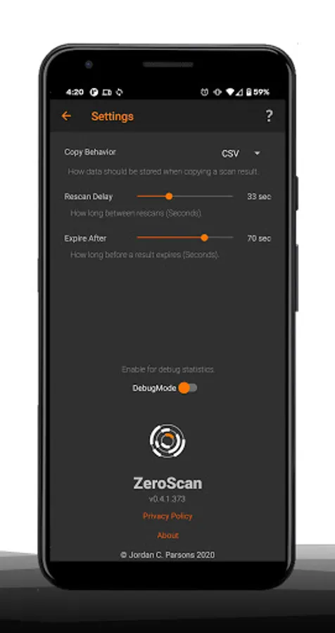 ZeroScan does not collect any data, or send any data out. It only listens for broadcasting services. No information is retained beyond user preferences once the app is closed.