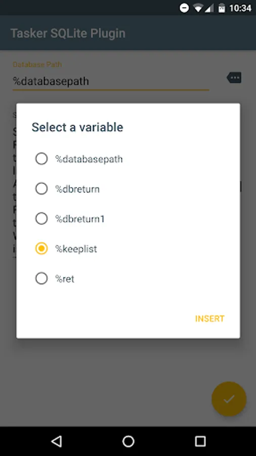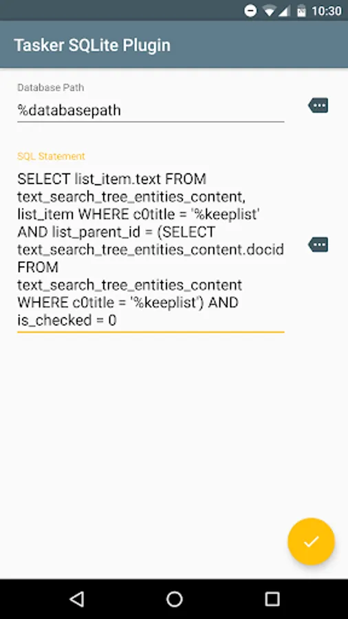 The easier way to query databases with Tasker, now with the ability to create your own databases! No need to hunt for a SQLite binary that is compatible with your phone. Simply add the Tasker SQLite Plugin step to a Tasker task, input the path to the database and your sql statement, and execute.