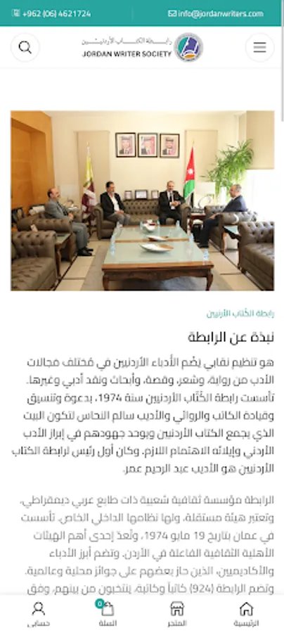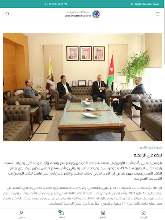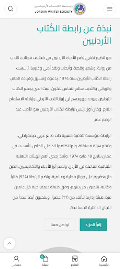 It is a trade union organization that includes Jordanian writers in various fields of literature, including novels, poetry, stories, research, literary criticism, and others. The Jordanian Writers Association was established in 1974, with the invitation, coordination and leadership of the writer, novelist and writer Salem Al-Nahhas, to be the house that gathers Jordanian writers and unites their efforts in highlighting Jordanian literature and giving it the necessary attention. The first president of the Jordanian Writers Association was the writer Abd al-Rahim Omar.