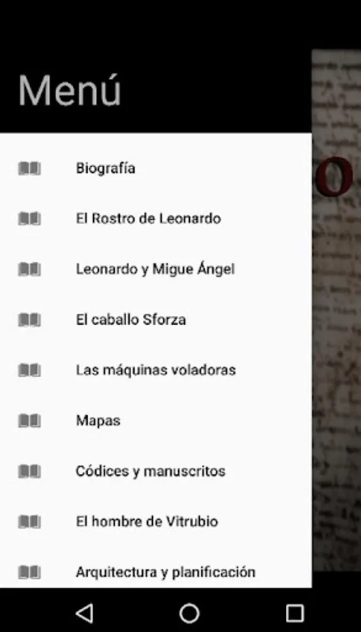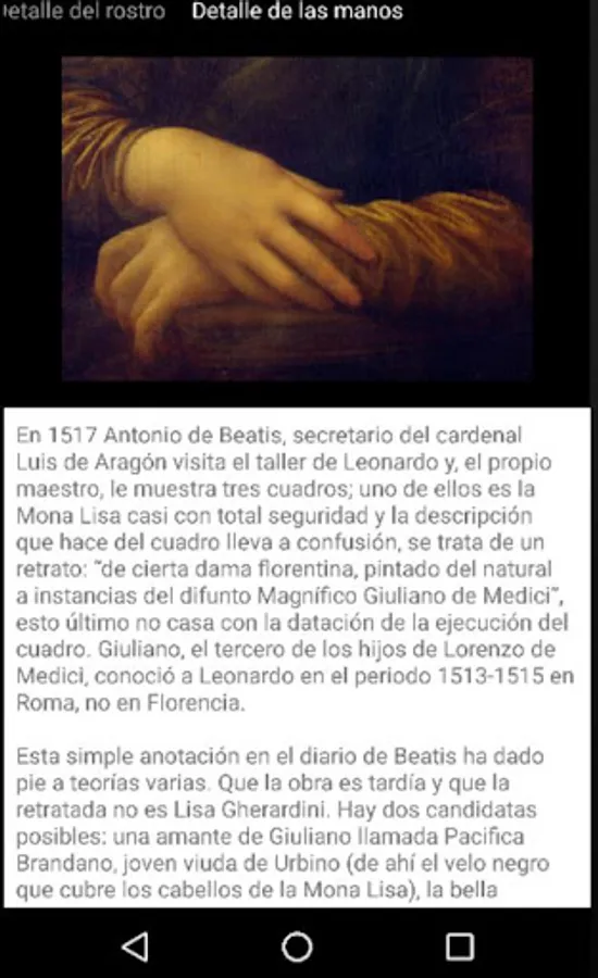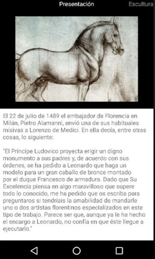 Leonardo da Vinci was a man ahead of his time and a multifaceted genius also an extraordinary painter and draftsman. In this app you will see a brief glimpse of his pictorial works, curiosities of his life, his sculpture projects, military engineering, architecture, cartography, painting or anatomy. Always with texts drawn from his manuscripts and codices, as well as the analysis of two pictorial works his.