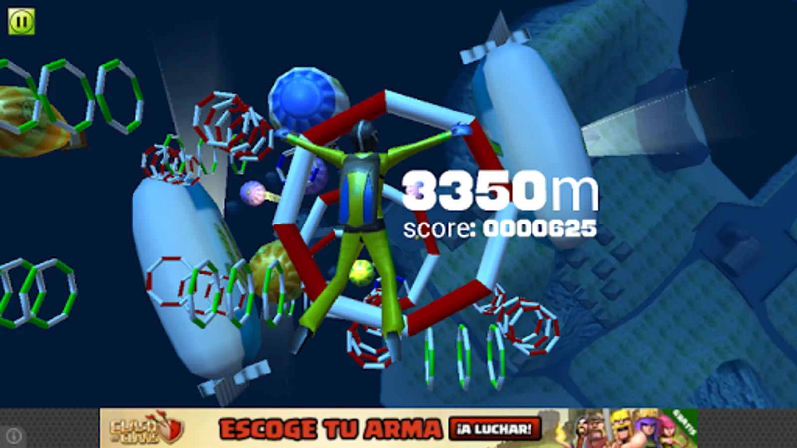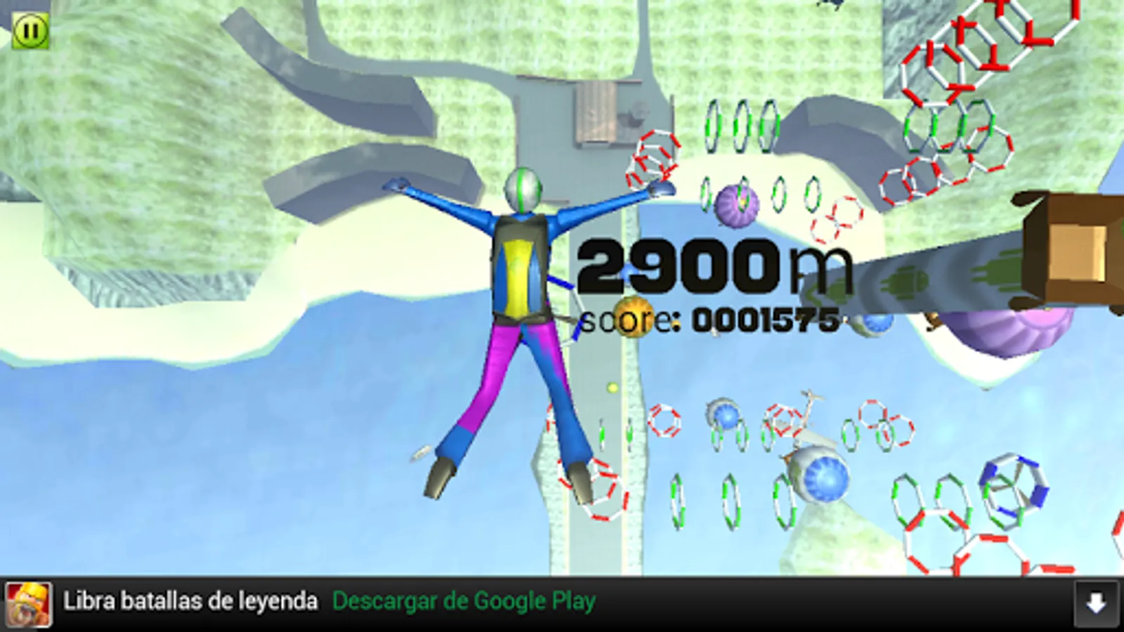 Move your device to cross all the rings and make somersaults sliding your finger on the screen to get the biggest points quantity during the fall.