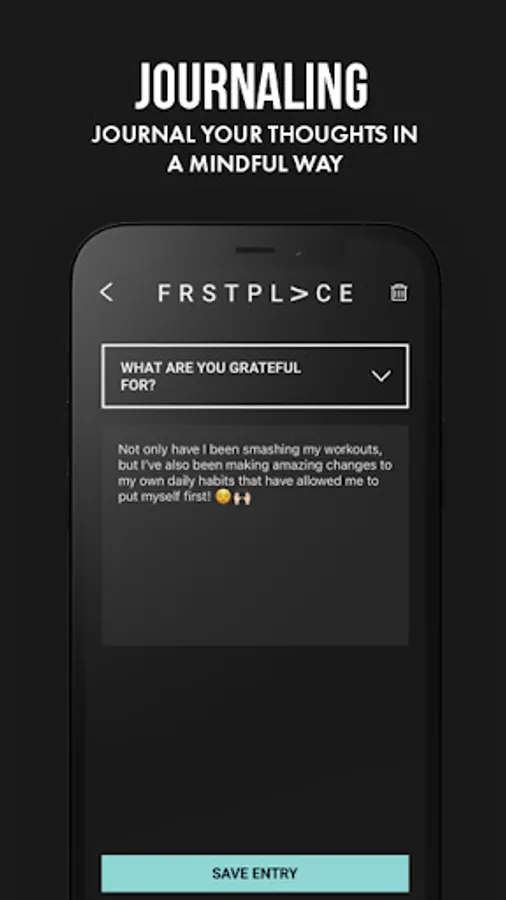 Fitness starts with the mind, so use our FRSTPLACE journal with guided prompts to keep track of your thoughts and reflect on your mindset.