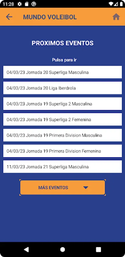 Mundo Volleyball is an application aimed at both players and fans of volleyball. In it you will be able to see and analyze the results and the classifications of the big Spanish leagues.