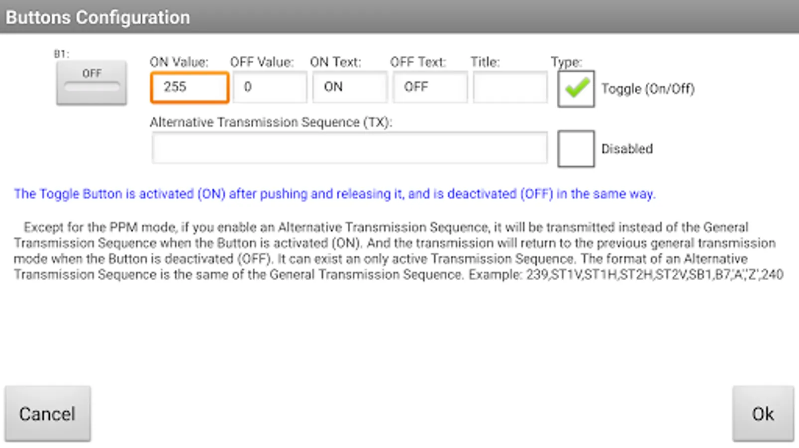 The content of the Transmission Sequence can be seen during operation, as well as to hide it for providing greater speed to the Application.