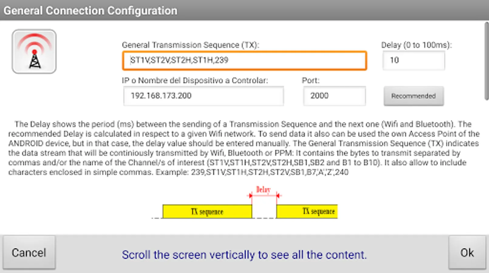 * Using the audio output of the Android device connected to an external transmitter or to a RC simulator.