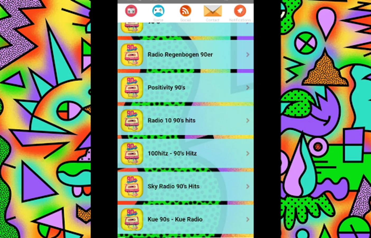 - Music from the 90's is a unique 90s radio app that will help you to be aware of the latest news, sports and music of the 90s favorites, such as: Hit FM Best of 90's and 181.FM Star 90's among many more .