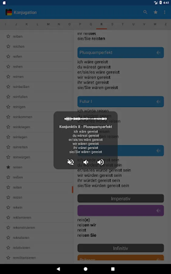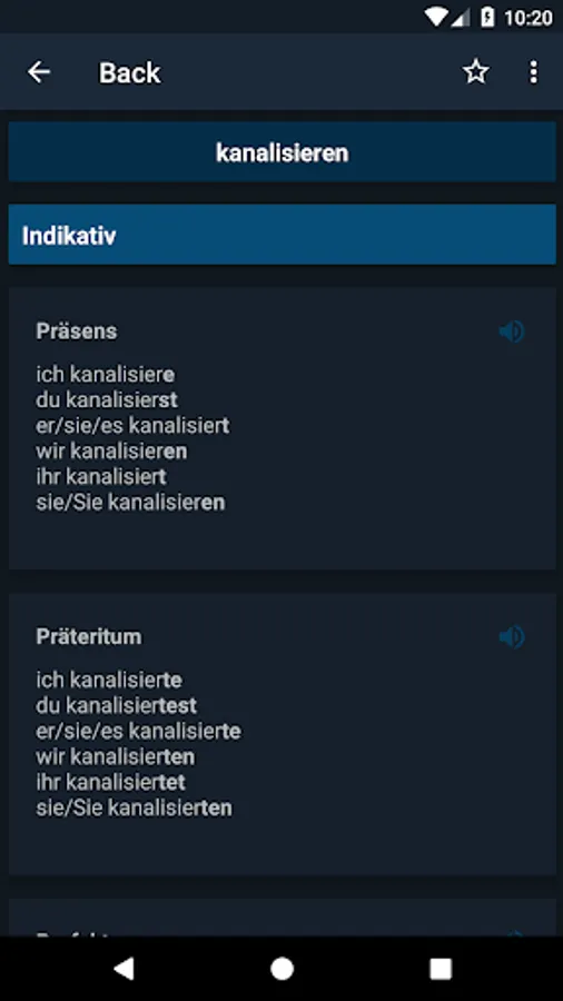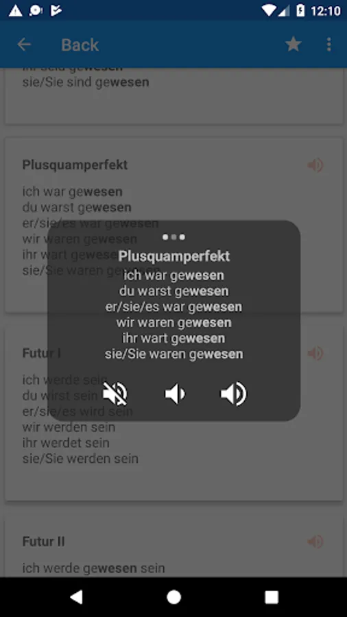 * Audio mode: You can listen to each conjugation to know how to pronounce it.