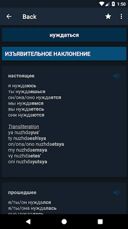 * Audio mode: You can listen to each conjugation to know how to pronounce it.