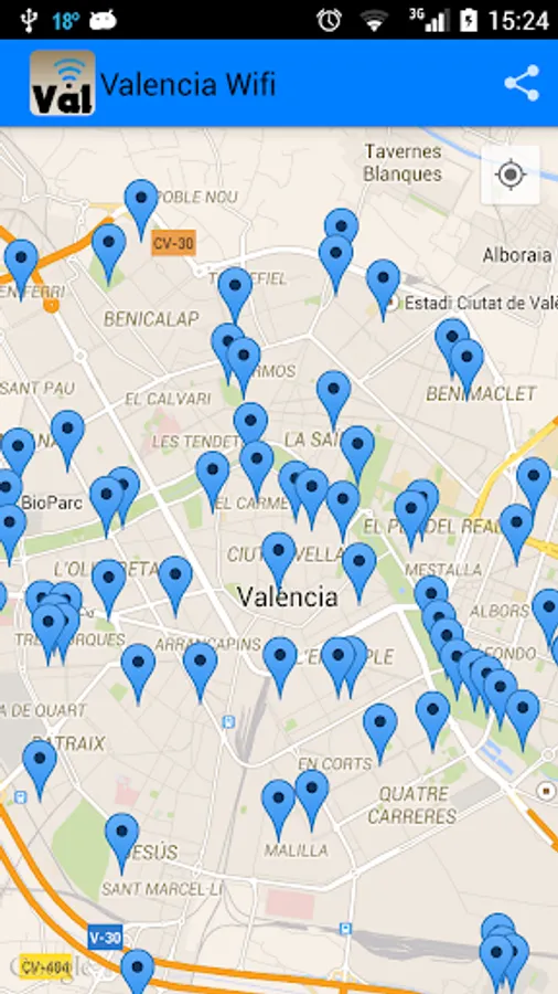 More than 50 free Wifi spots in Valencia city.