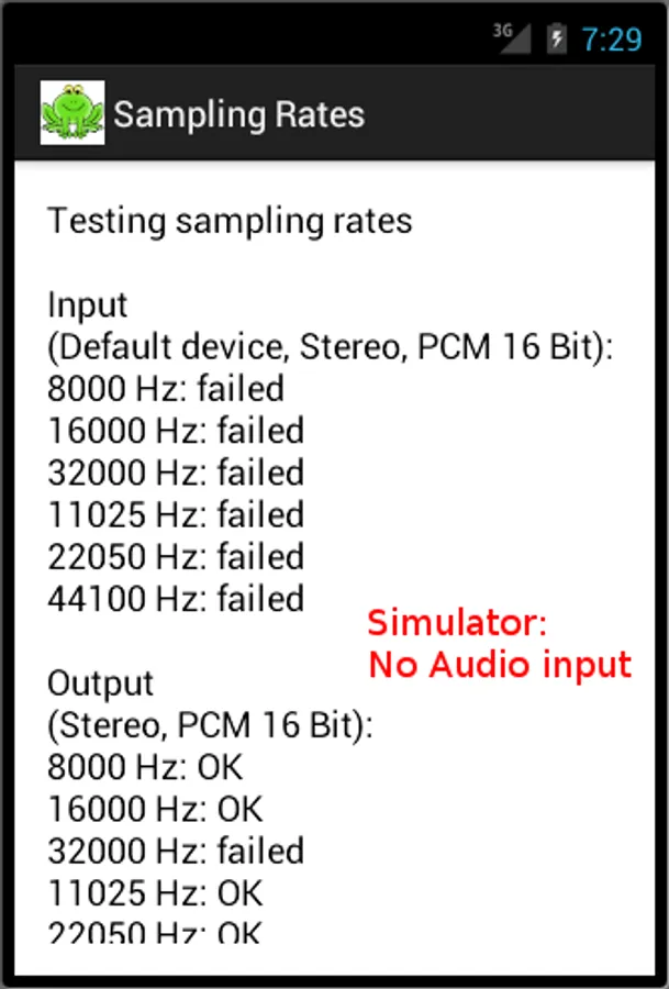 This is a very simple app to check which sampling rates your phone supports. No frills.