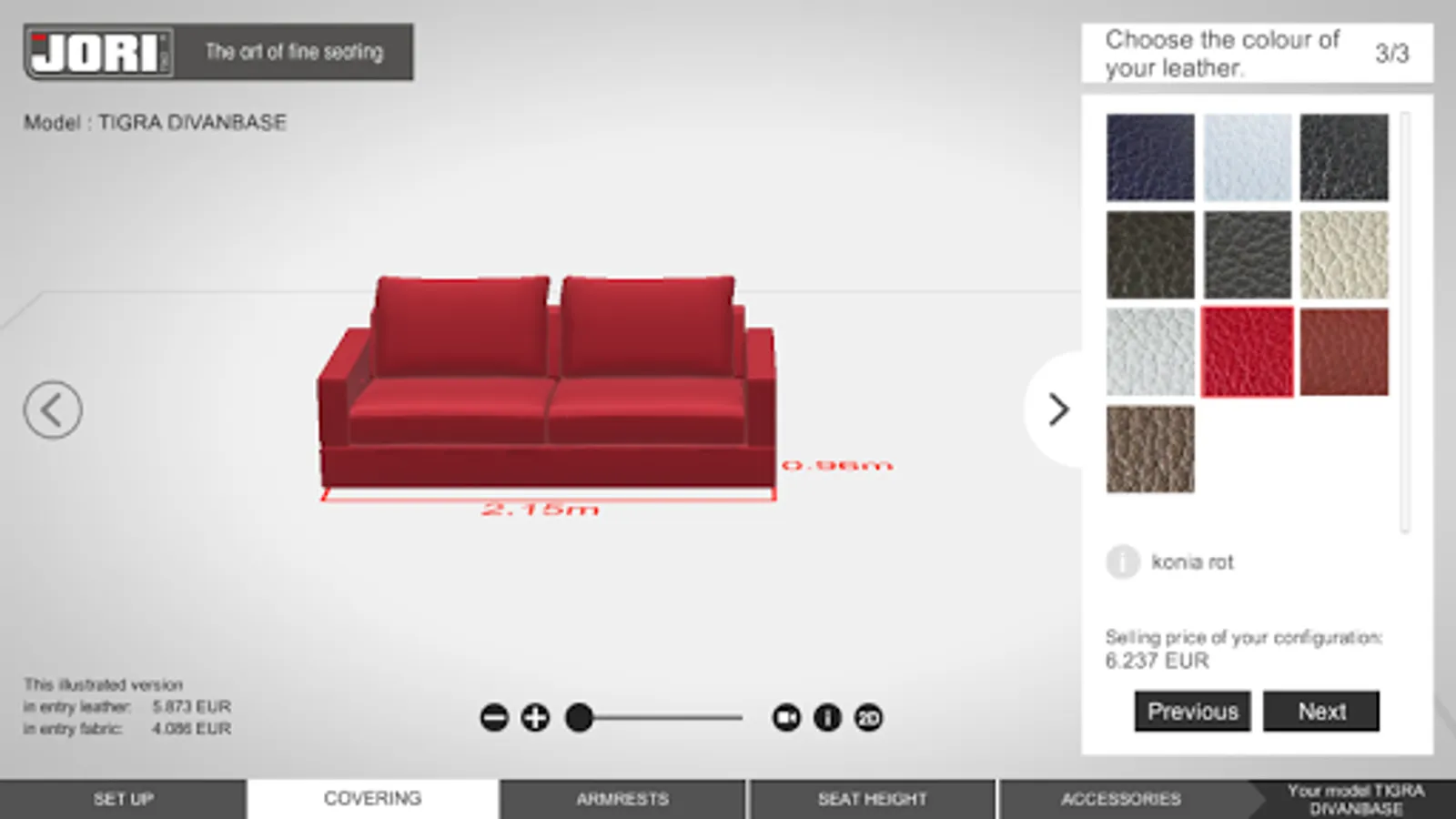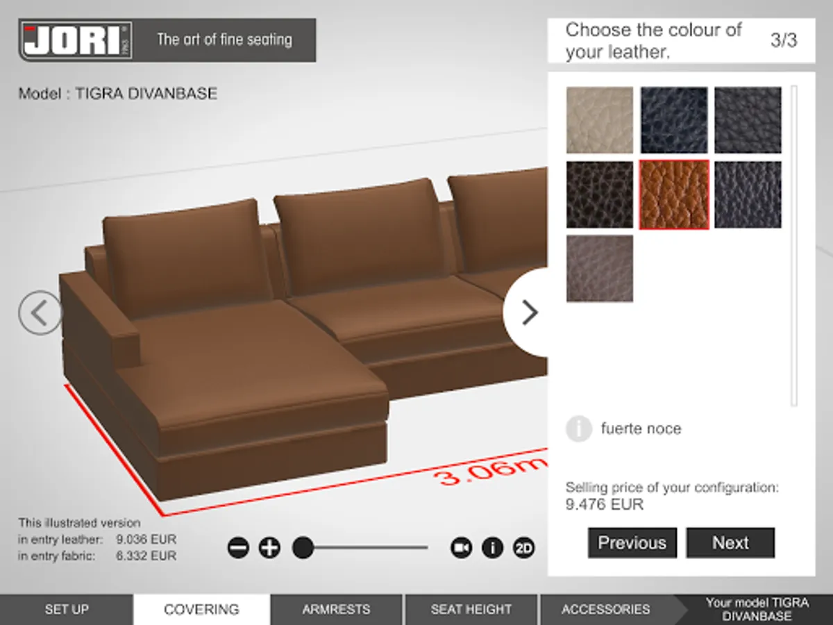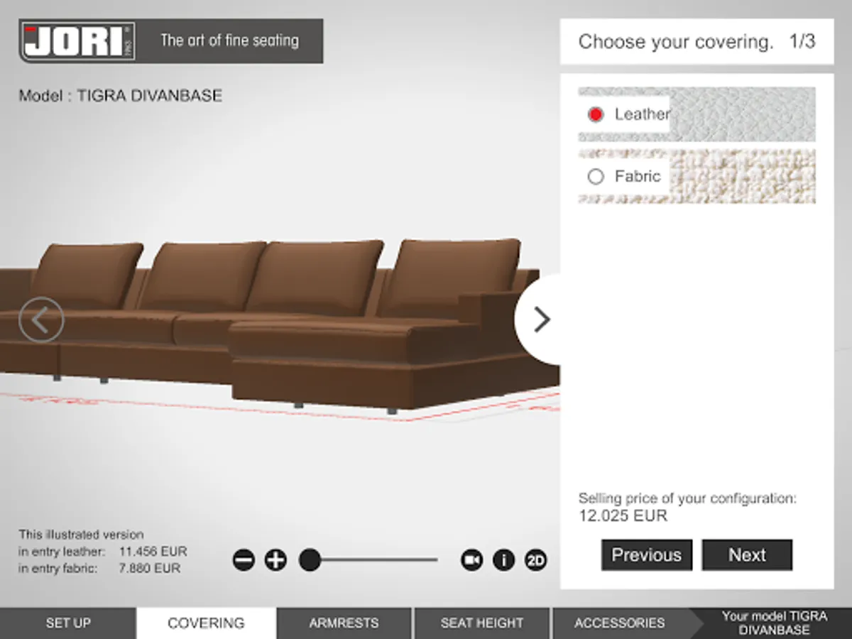 The convenient 3D-configurator allows you to build and visualize your piece of seating furniture according to your wishes by attuning colours, materials, elements and options. Your sofa, your reclining chair, your armchair, your chairs, your table, your interior accessories, just like you want them.