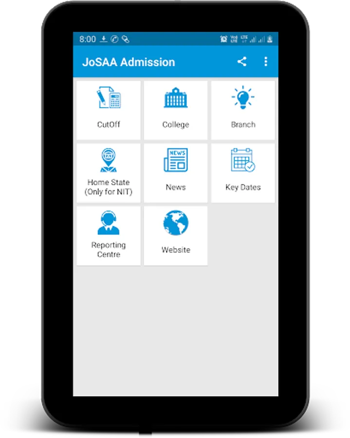 An App for IITs / NITs / IIITs / GFTIs Admission through JoSAA-2023. Last Year’s Cut-off AIR, Category wise Closing Rank, College Seat Matrix & Contact Details, Branch wise College, Reporting Centers, etc. for the admissions in various courses of Engineering and Architecture like B.Tech., B.S., Dual Degree (B.Tech.+M.Tech.) in 23 IITs, 31 NITs, 23 IIITs, and 23 GFTIs