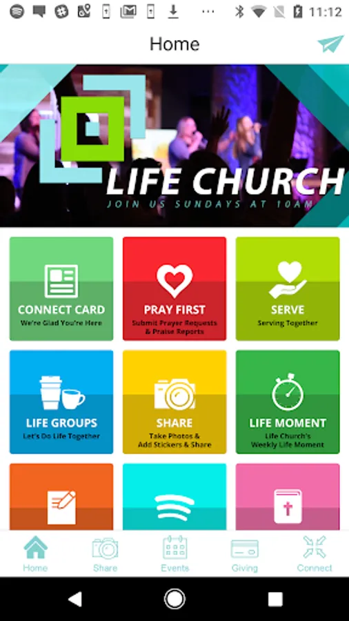 - Take a picture from within the app and add Life Church branding to the picture. Once you are done, you can share the picture by email, text or on social media.
