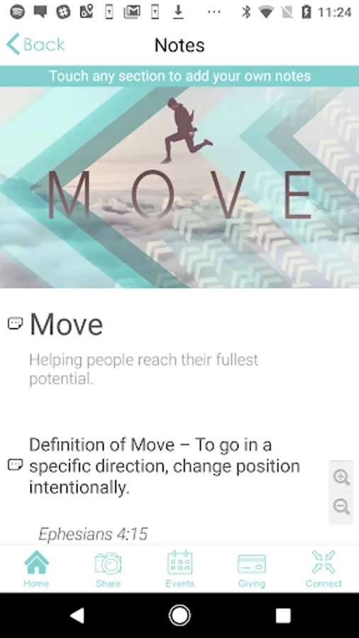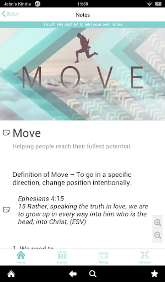 - Follow along with Sunday's message using the interactive sermon outline. You can take notes on any section of the outline, and once the message is finished, you can either email or save the outline and your personal notes will be inline where you took them.