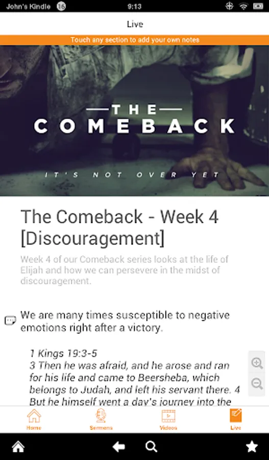 - Sermon notes have never been this convenient! With a single button you will access the current sermon and from there you can take notes on any note or verse and then email or save the notes when you are done