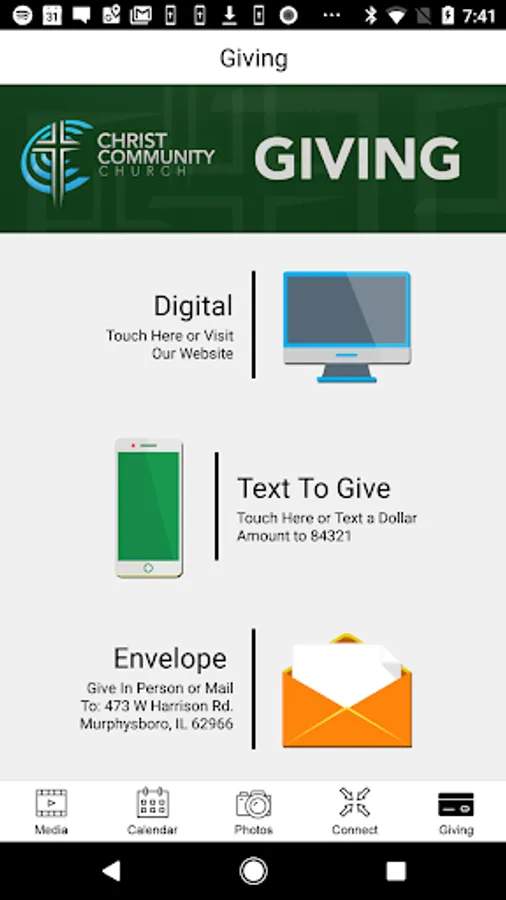Connect with Christ Community Church from anywhere with the Christ Community Church app for Christ Community Church in Murphysboro, Illinois. With the app you can: