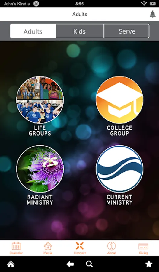 - The Connect section lets you browse the currently available LifeGroups as well as details about serving and other programs available at h2o Church.