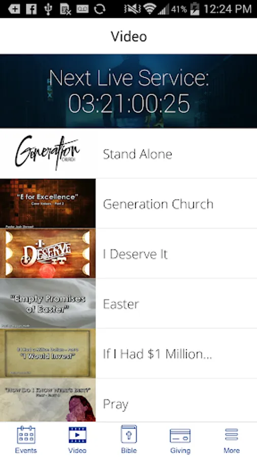 - The Video section organizes all of Generation Church's recent sermons by sermon series and makes it easy for you to find and view any sermon sermon from the last year.