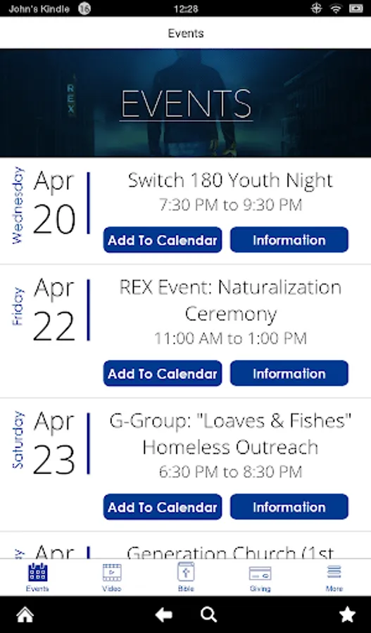 - The in-app calendar allows you to view all of Generation Church's upcoming events. Each Event includes additional information (when applicable) and the ability to add the event to your device's calendar.