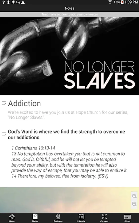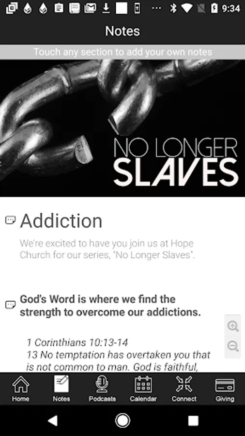 - Follow along with the current sermon using the interactive sermon outline. Touch anywhere in the outline to take a personal note on that section, and once the message is finished, you can email the outline and your personal notes will be inline where you took them.
