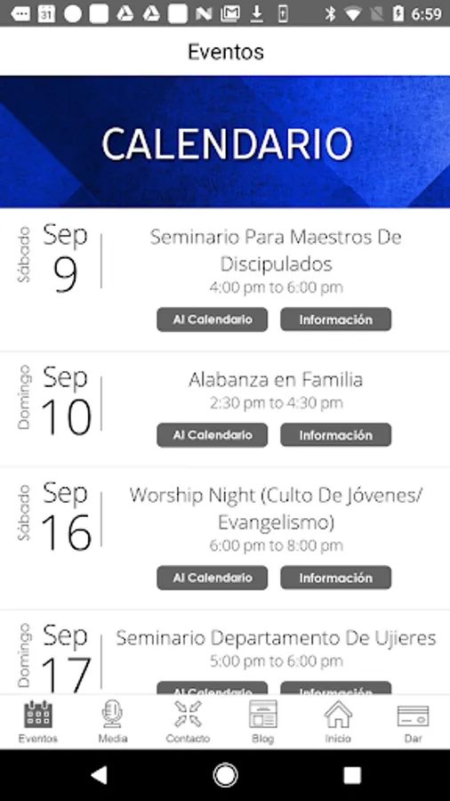 - Mantenerte al día de nuestras actividades y eventos usando el calendario en la aplicación.