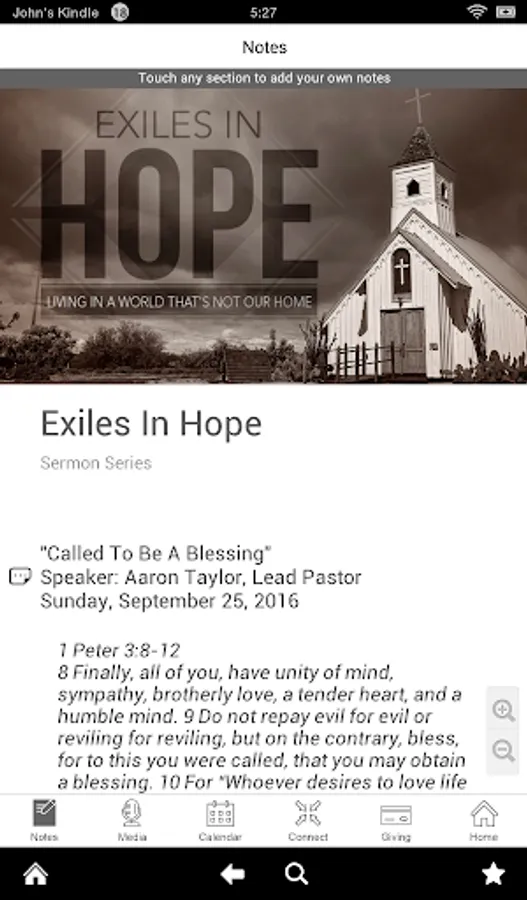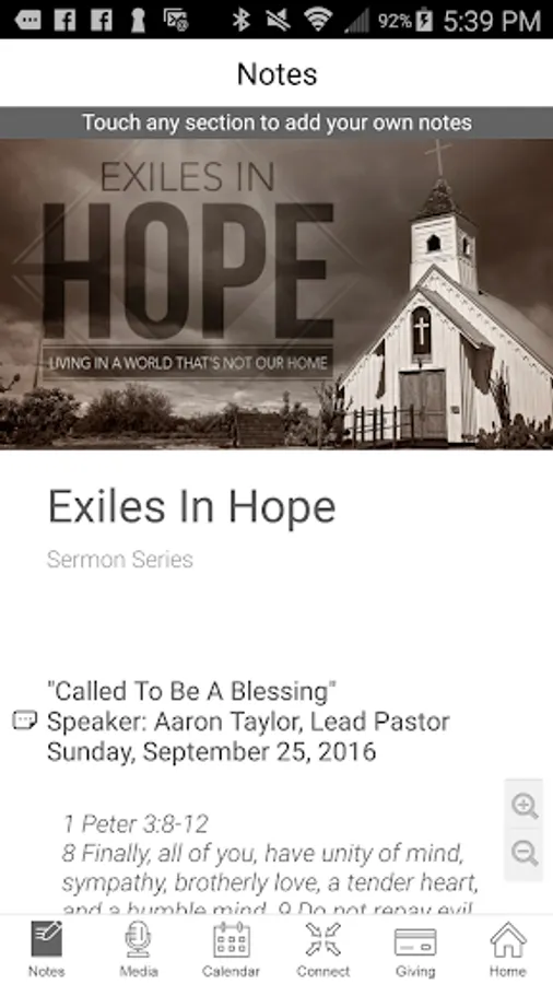 - Sermon notes have never been this convenient! With a single button you will access the current sermon and from there you can take notes on any note or verse and then email or save the notes when you are done