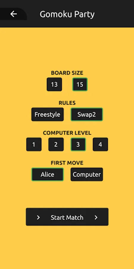 - game modes: Freestyle and Swap2 (Not yet: Renju)