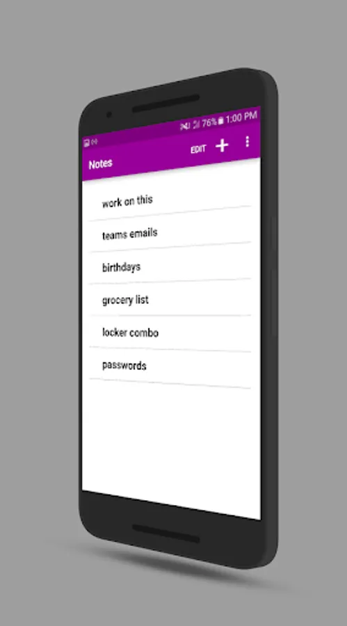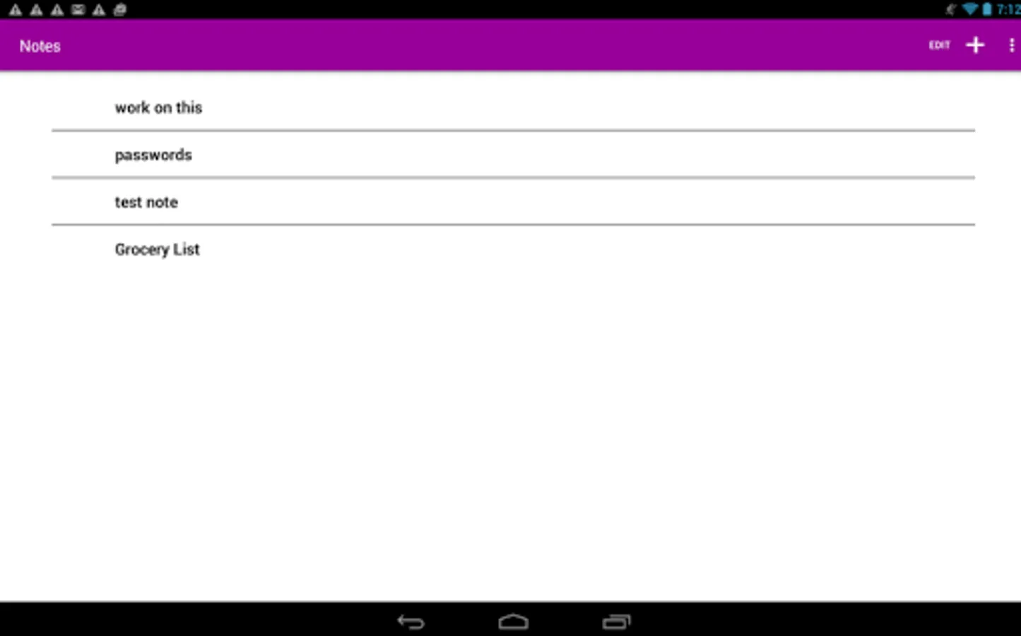 To get started using the app click the plus button on the right side of the action bar. You can then enter the title of the note you are about to make. After you choose the title you can start typing in your note. Click your phone's back button when you are done and it will save the note. You will then be able to view all of your notes.