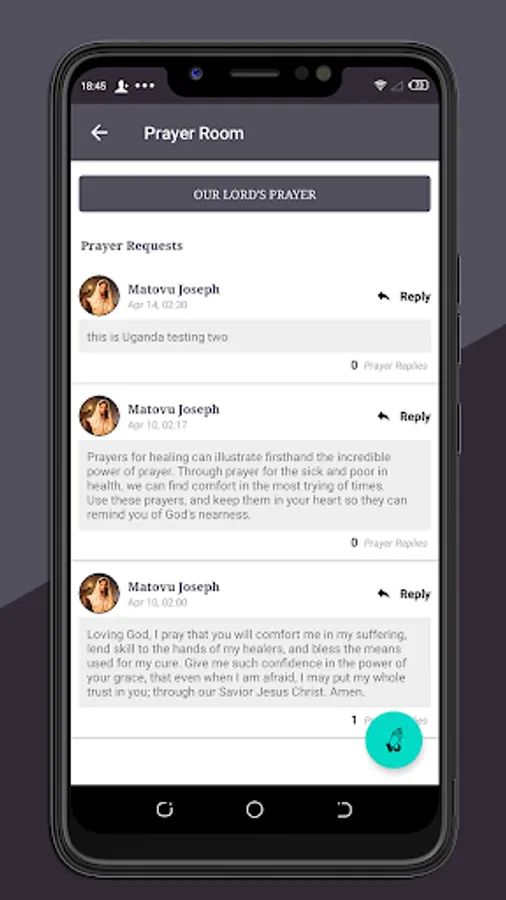 4. Prayer Room where you interact with other believers in prayers especially through prayer requests