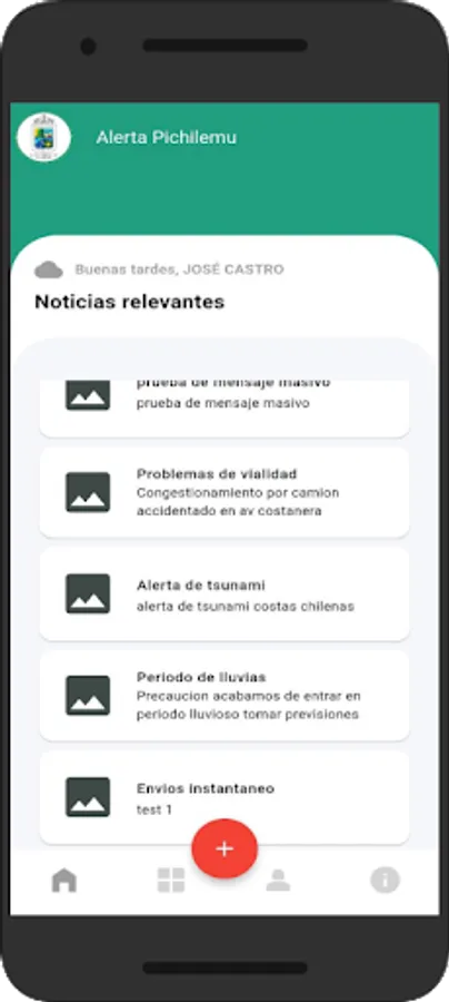 Alerta Pichilemu is a mobile application designed to report incidents in the city of Pichilemu, Chile. It allows users to quickly report any emergency situation, such as accidents, thefts or security problems, attaching photos and detailed descriptions. In addition, it offers real-time notifications on relevant events and promotes citizen collaboration for an efficient response to emergency situations, channeling the information to the authorities of the Illustrious Municipality of Pichilemu.