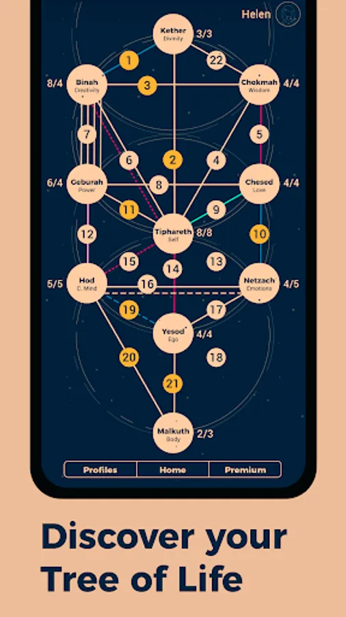 Using your birth data and Kabbalistic numerology, the app calculates your personal Tree of Life, similar to a natal chart. This Tree reflects your sacred purpose (Tikun) or life mission, as well as your destiny, making it one of the most important tools in the world of spirituality and occultism.