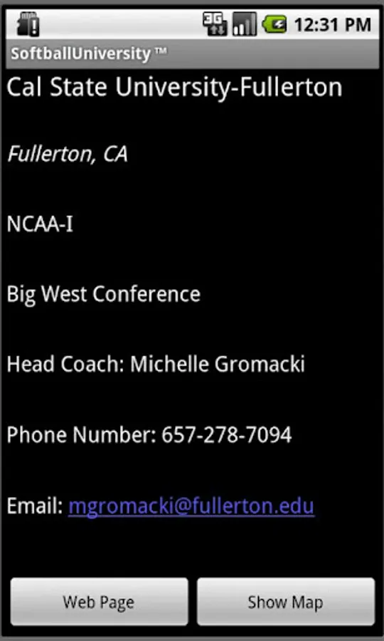 Want to play softball at the university level, then this app is right for you. Softball University will list universities per division and/or state. When a university is selected, a contact page is displayed. The contact page will contain Coach's phone number and email. It will also contain a link to the universities website and a location map.