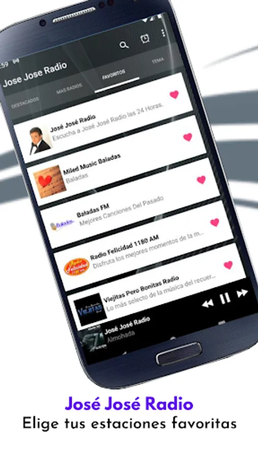 Welcome to the new radio application "José José Radio", making available to the listener the music of the great composer and singer José José, with his greatest hits of all time playing 24 hours a day.