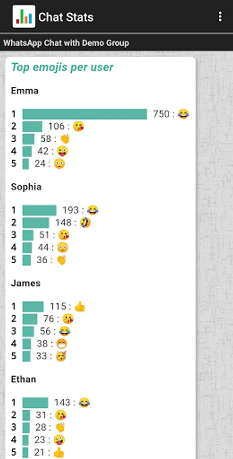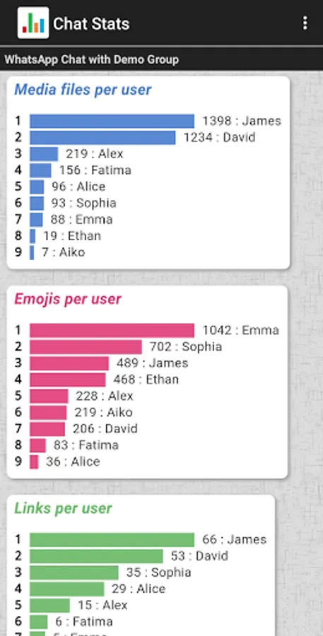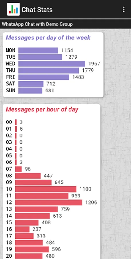 After analyzing the exported chat, this app displays the statistical data with bar graphs