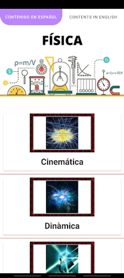 The Fundamentals pf Physics application allows you to learn the fundamental principles of Physics: Mechanics, Electrical, Optics and Nuclear. Excellent Bilingual application in Spanish and English that allows students to learn the fundamental principles of Physics with the fundamental theories and an immense number of examples and innumerable proposed and solved exercises. The following topics are covered in the application: