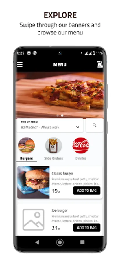 Now, through Joseph Burger app, you can order delivery or pick-up service from the branch in an easy and professional way