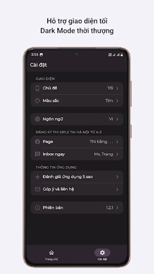- Support to register for the A1, A2, B1, B2 license exam, contact us in the settings.