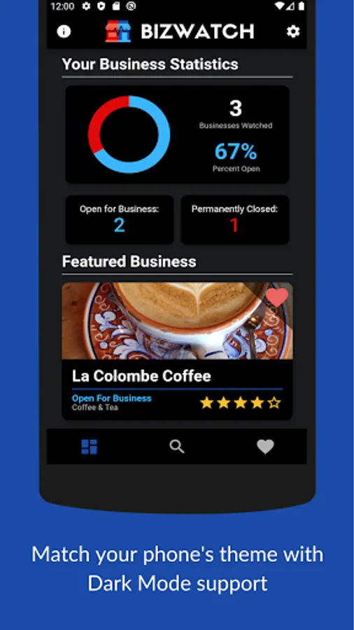 By using BIZWATCH, you are making a difference in your community by keeping a pulse on what is happening with your local businesses. From watching your favorite businesses to providing ways to support them, this app helps bridge the gap between you and Main Street. Download BIZWATCH today and join us in making a difference for a better tomorrow!