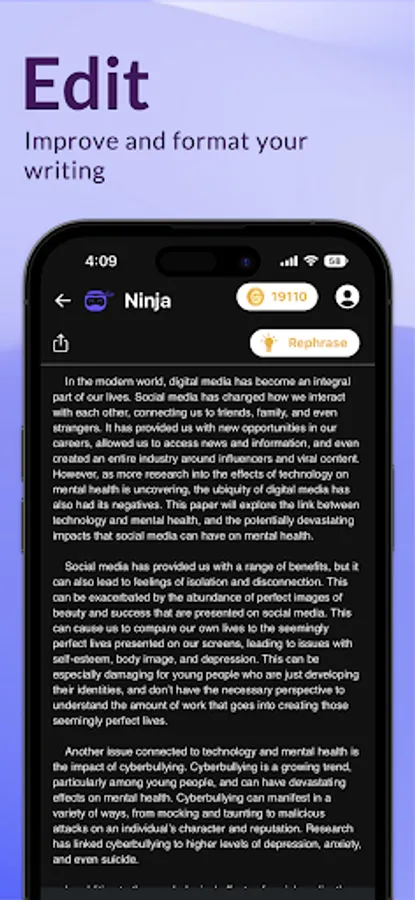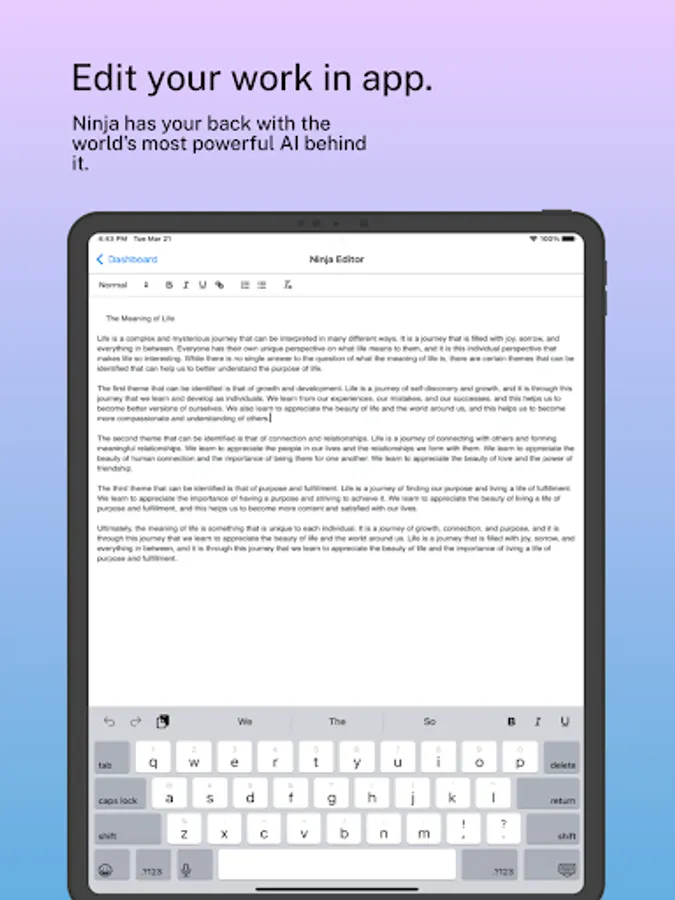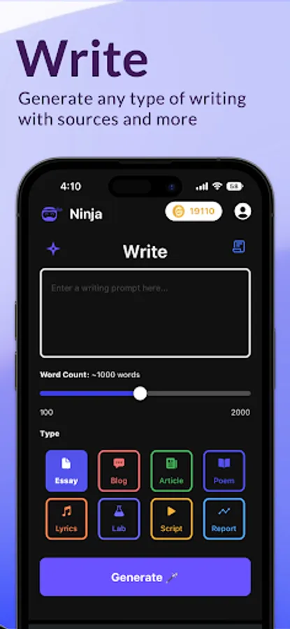 Discover WorkNinja - the all-in-one app designed to revolutionize the way you write, research, and learn. Perfect for students, professionals, and anyone with a passion for writing or seeking answers to their questions, this app is the ultimate tool for boosting your productivity and knowledge.