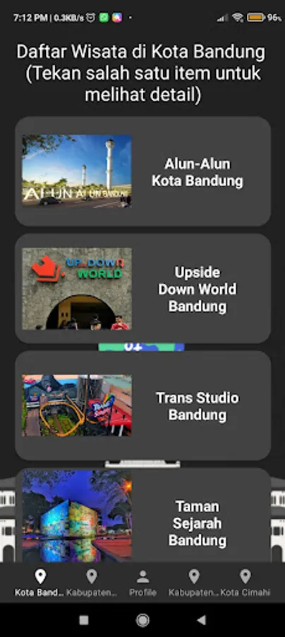 World of Bandung is an application that introduces tours around the Greater Bandung area (Greater Bandung).