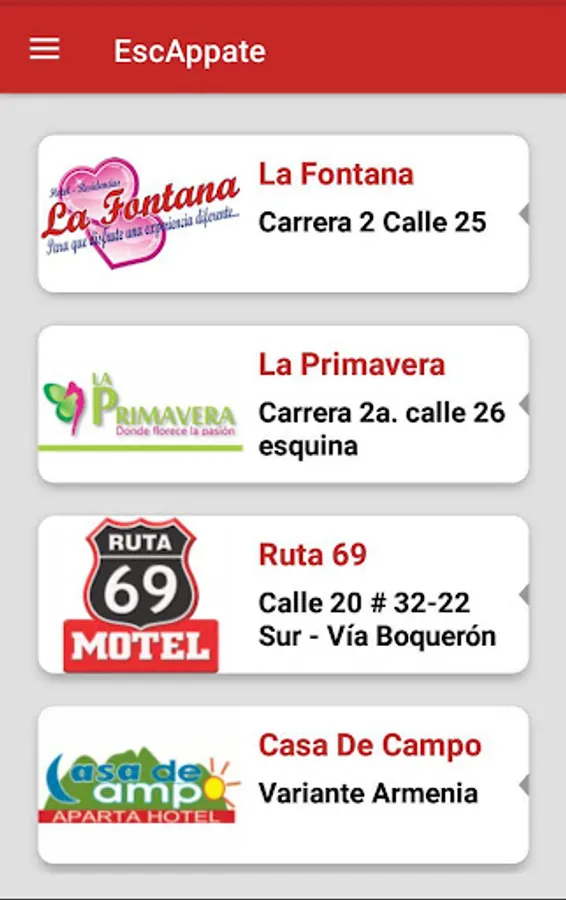 Escape gives you firsthand information about motels and sex shops that currently exist in your city, observing the full list of motels and sex shops, obtaining detailed information about each as: types of rooms, prices and different services offered.