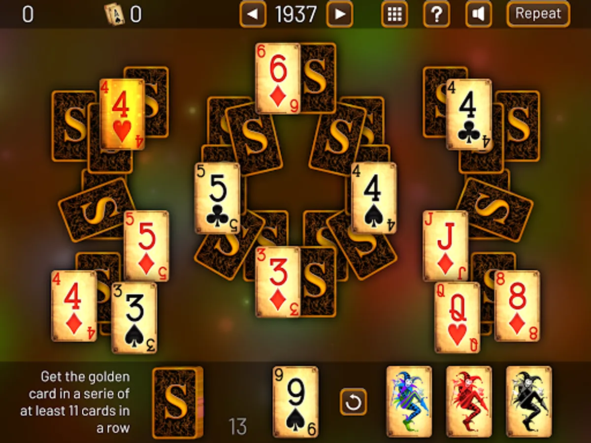 At certain levels, you will have the help of a wild card, that you would be able to use any time replacing the card that you need. It's very useful for building long sequences.