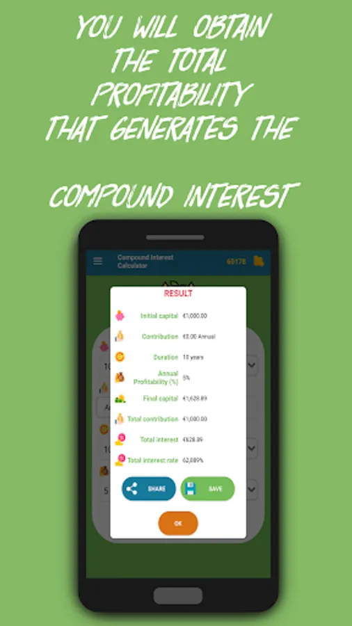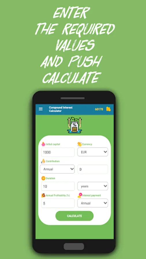 This application will help you quickly calculate the profitability of your investment if you apply compound interest.