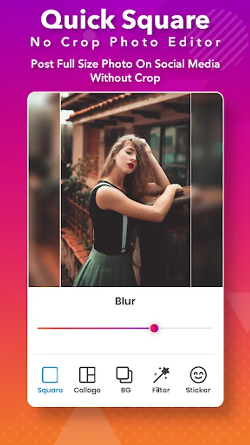 Photo Square - Insta Square Blur Image Background is an amazing photo editor that can create the beautiful and popular photo so easy. Photo Square is a great application to make your photo square blur without crop.