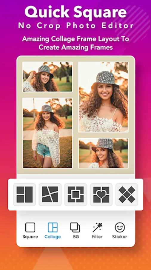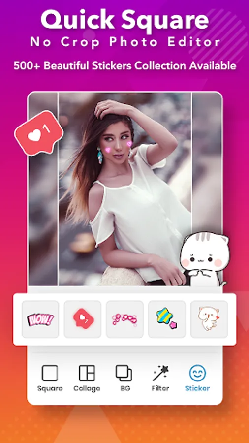 Square Pic Collage Maker is amazing snap photo & insta pic stickers photo editor, you can add snap text with emojis and other stickers, use the snap way to say ‘hi’ to worlds, also help you to keep the photo ratio or change it to square, easy to use.